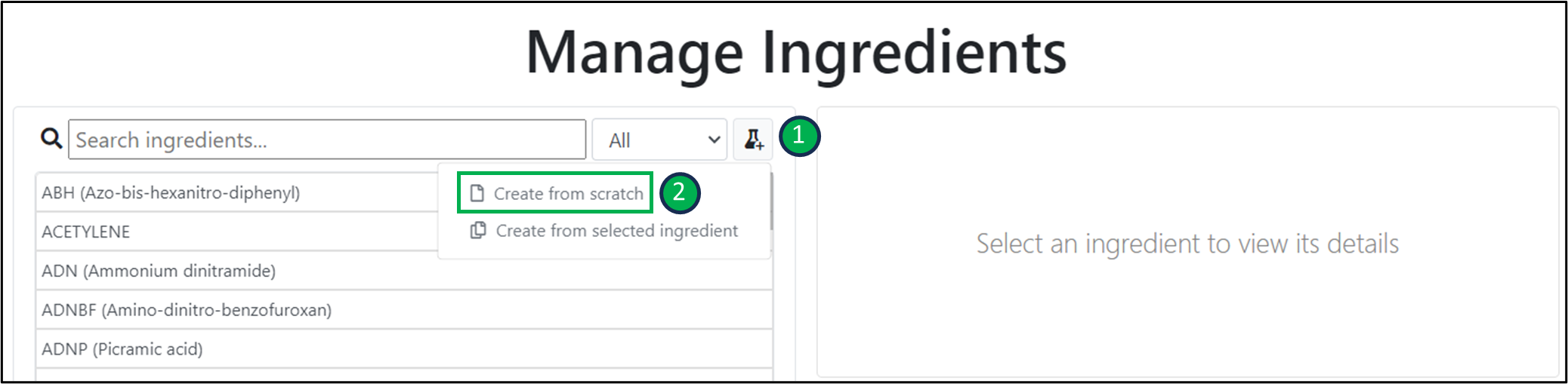 - Click on ‘Create from selected ingredient’