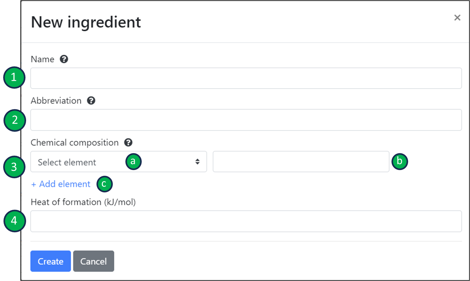 - Insert a descriptive name for the new ingredient