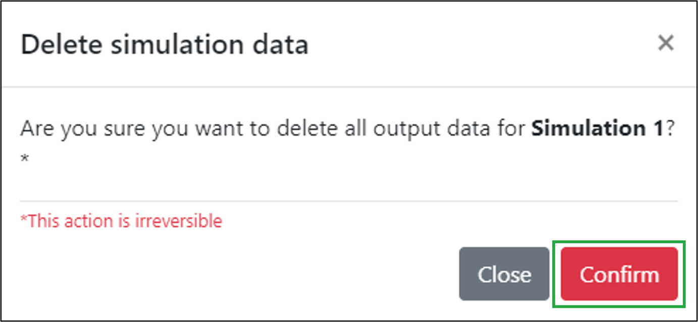 In the ‘Delete simulation data’ window which opens, click on the ‘Confirm’ button: